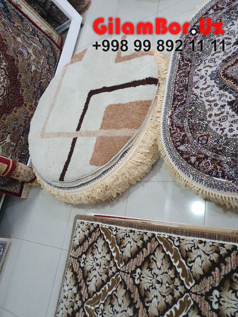 РАЗМЕРЫ от 50 см до 2,3,4,5,6 и больше, 10 метровые ковры и покрытия также на любую длину. Через нас вы можете заказать с завода - эксклюзивный дизайн и при БОЛЬШОМ объеме в вилоятах, по всему Узбекистану.