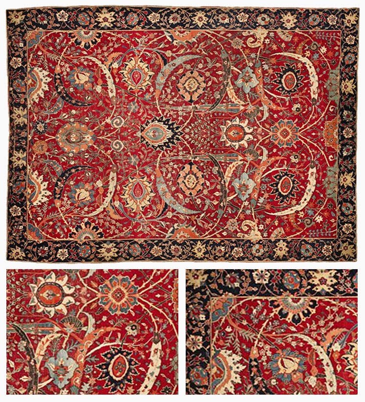 Ковер Кларка с серповидными листьями, продан за 33 765 000 $. Безусловный лидер рейтинга и по праву считающийся самым дорогим ковром в мире и по сегодняшний день – Ковер Кларка. Его выставили в июне 2014 года на аукционе Sotheby's со стартовой ценой 5 000 000 долларов. Ковер был изготовлен в начале XVII века в Юго-Восточной Персии, это территория нынешнего государства Иран, что в очередной раз подтверждает высокое качество и большую ценность изделий, которые производили персидские мастера.