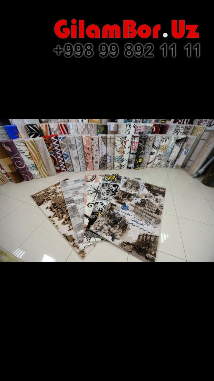 РАЗМЕРЫ от 50 см до 2,3,4,5,6 и больше, 10 метровые ковры и покрытия также на любую длину. Через нас вы можете заказать с завода - эксклюзивный дизайн и при БОЛЬШОМ объеме в вилоятах, по всему Узбекистану.