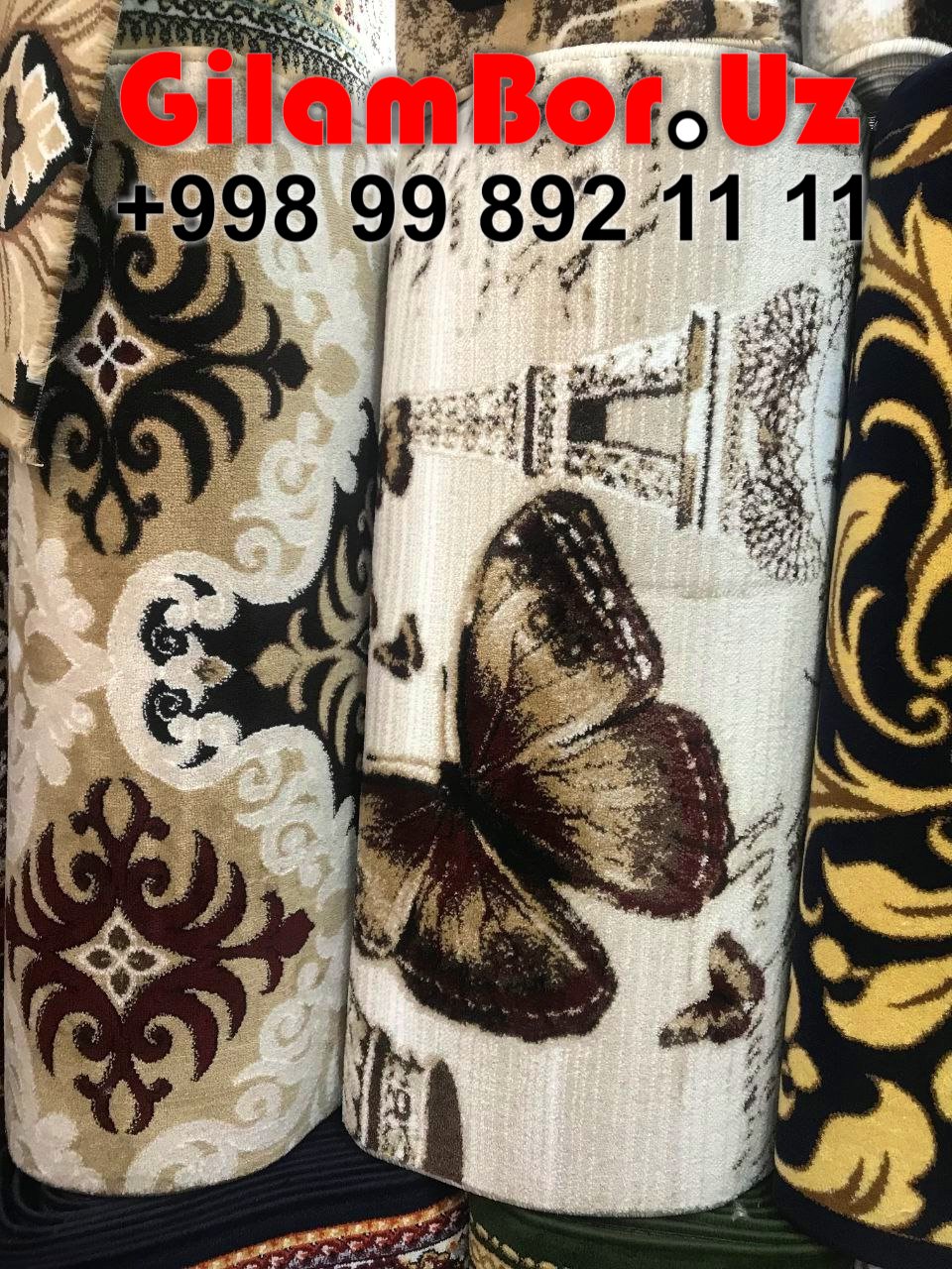 РАЗМЕРЫ от 50 см до 2,3,4,5,6 и больше, 10 метровые ковры и покрытия также на любую длину. Через нас вы можете заказать с завода - эксклюзивный дизайн и при БОЛЬШОМ объеме в вилоятах, по всему Узбекистану.